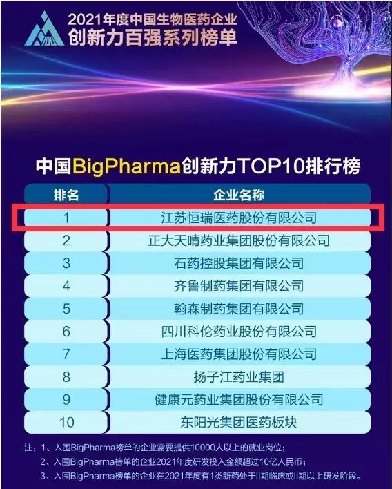 9月16日,由米内网主办的“2021年度中国生物医药企业创新力百强系列榜单”发布会在线上举办。PG医药继去年登顶“中国BigPharma企业创新力TOP10排行榜”后,今年再次名列该榜单首位。